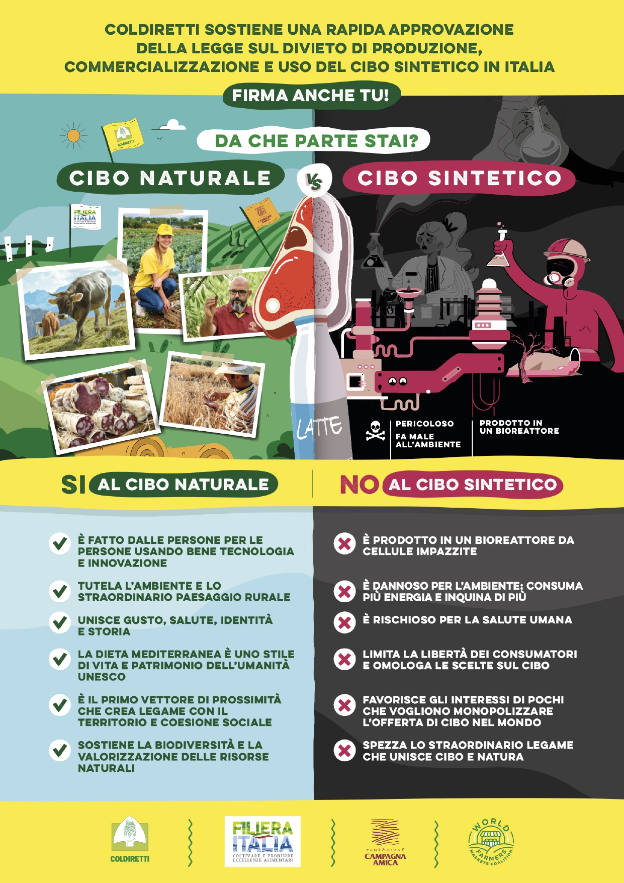 Nella seduta del 23 marzo 2023 il Consiglio comunale ha stabilito di aderire alla petizione promossa da Coldiretti contro il cibo sintetico, sostenendo tutte le conseguenti e connesse iniziative di sensibilizzazione attinenti ai pericoli del cibo sintetico